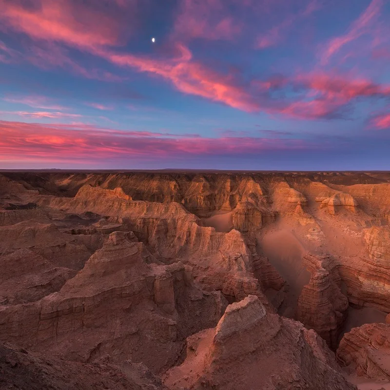Día 2: Viaje a Mandalgobi. Exploración de la Reserva Natural de Ikh Gazriin Chuluu. Formaciones rocosas en un paisaje lunar con más de 40 cuevas, un retiro ideal para la meditación. Petroglifos, ruinas de templos ancestrales y un teatro al aire libre dedicado a los Urtiin duu, los “cantantes de cantos largos”. Senderismo, exploración 4×4 en UTVs/ATVs, escalada, fotografía del paisaje y de los fascinantes atardeceres del desierto. Acampada en tiendas de campaña.